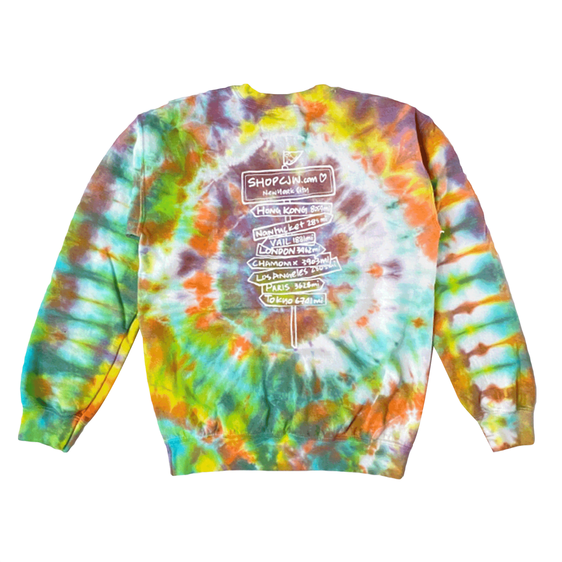 At the beginning of the Covid-19 pandemic, we (along with the rest of the world) were staying at home baking bread, designing face masks, and making tie-dye! Our custom tie-dye T-shirts were so popular over the summer that I decided extend that summer magic into a special #friendsofCJW sweatshirt. This limited-edition sweatshirt design, inspired by all the places we dreamed of traveling when we couldn't, is custom hand-dyed with love, completely unique, and numbered!